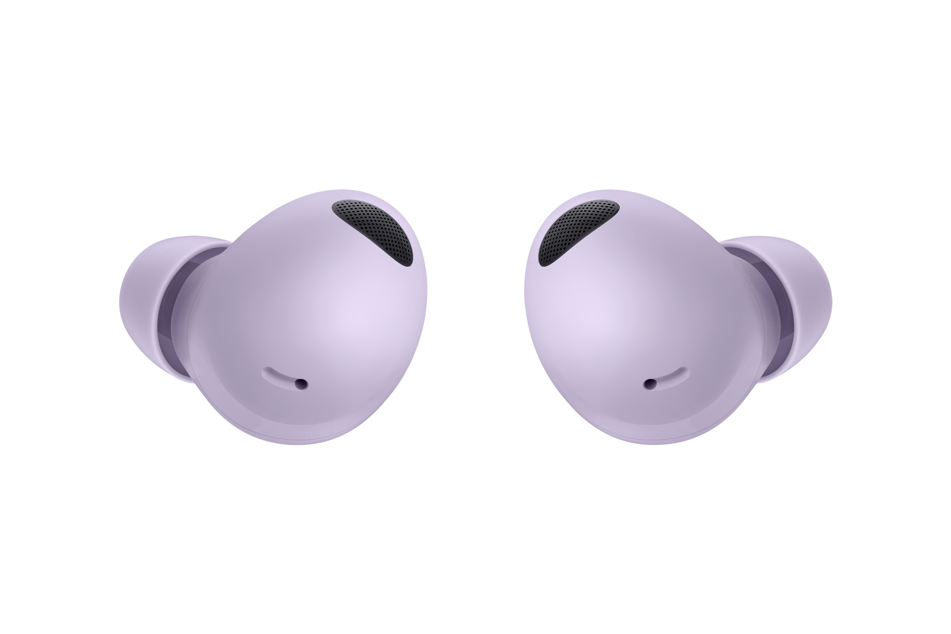 Deux écouteurs Galaxy Buds2 Pro en Bora Purple flottent au milieu de l’écran.